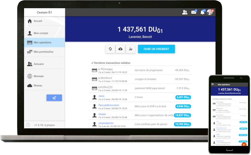 Cesium Duniter client to manage wallets, certifications in a libre money
